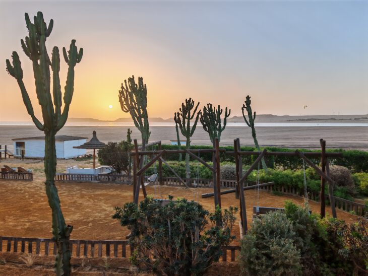 Situada entre el océano Atlántico y las vastas dunas del desierto, Dakhala es una ciudad mágica donde la naturaleza muestra su dualidad más sorprendente. Este contraste entre el desierto dorado y las aguas cristalinas del Atlántico crea paisajes únicos que no se encuentran en ningún otro lugar del mundo. Aquí, los amaneceres y puestas de sol son verdaderas obras de arte, con colores cálidos que pintan el cielo y se reflejan tanto en la arena como en el agua.