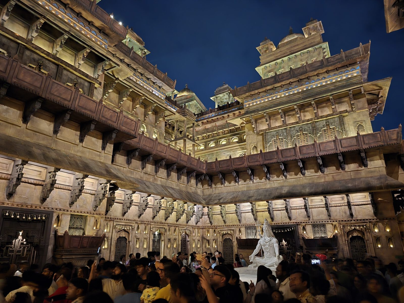 Uno de los atractivos más fascinantes del festival son los pandals, esas construcciones temporales que colonizan las calles —desde avenidas principales hasta callejones residenciales— para dar cobijo a las representaciones de Durga. Pero no se limitan a lo decorativo: cada pandal suele adoptar un tema social contemporáneo. Puede reflexionar sobre medio ambiente, empoderamiento femenino, justicia social, tecnología, memoria histórica o crítica política, siempre manteniendo a Durga como pieza central.