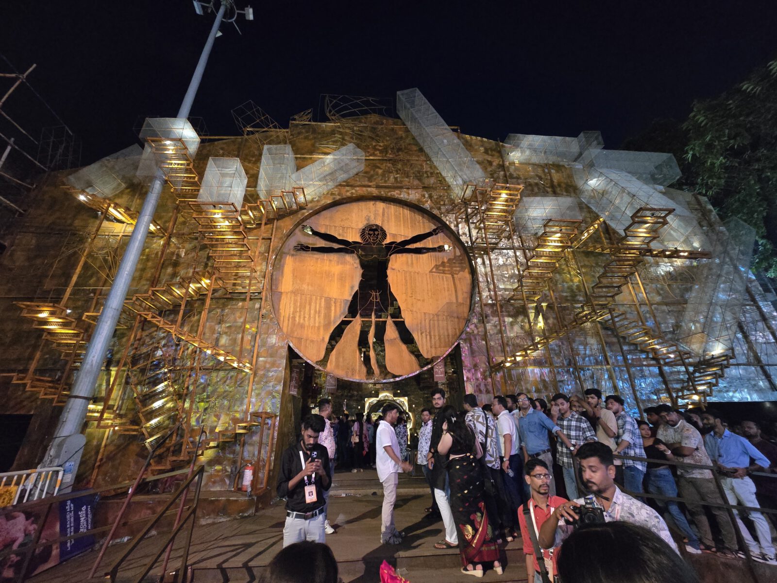 Durante los días festivos, los pandals no son solo lugares de ofrenda: se convierten en espacios de exhibición cultural, con iluminación creativa, efectos visuales, proyección de arte, música, instalaciones interactivas. En 2025 algunos pandals adoptaron temas audaces: representaciones políticas o referencias futuristas, incluso imágenes satíricas de líderes mundiales, combinadas con decoraciones artísticas minimalistas. (Ver prensa local: se comentan estos pandals como “pandals making headlines with political and AI themes”).