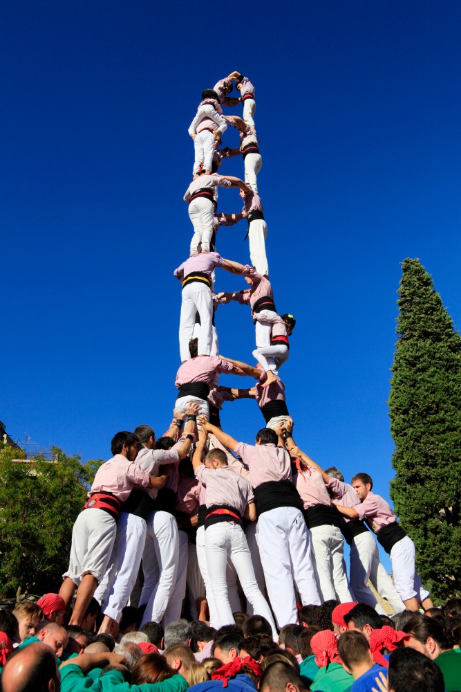 La plaza Octavià pudo vivir su primer castillo de grama extra – como se conocen los castillos de mayor dificultad – gracias a Minyons de Terrassa, que descargaron el 5 de 9 con forro. Entonces no podíamos saber que una semana más tarde descargarían el primer castillo de 10 de la historia. Las otras colles invitadas también completaron castillos de gama alta. Castellers de Cerdanyola descargaron un 4 de 7 con aguja –un pilar que se alza en el interior de la estructura- y sufrieron una caída con la torre de 7, aunque el incidente más grave lo protagonizarían los Castellers d’Esplugues, con una caída descargando también una torre de 7, a consecuencia de la cual una de las chicas acabó en el hospital con una costilla rota. Aún así lograron descargar un 5 de 7.