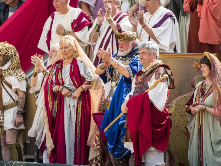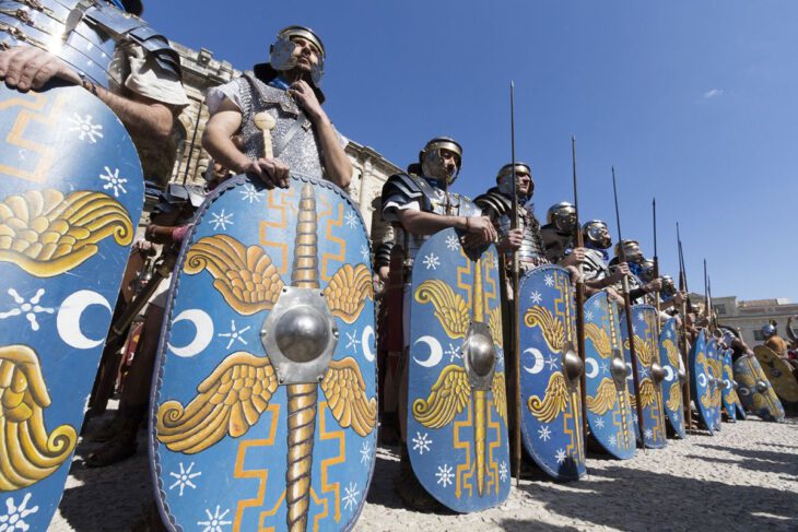 La empresa francesa Culturespace, que gestiona los espacios históricos del periodo romano en la ciudad de Nîmes, organiza cada año los Grandes Juegos de la Romanidad, que con más de 500 personas pertenecientes a diferentes agrupaciones de recreaciones históricas acuden de toda Europa para participar como actores y figurantes en esta espectacular reconstrucción histórica anual.
