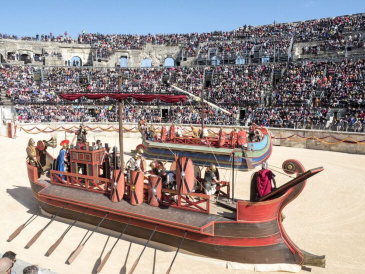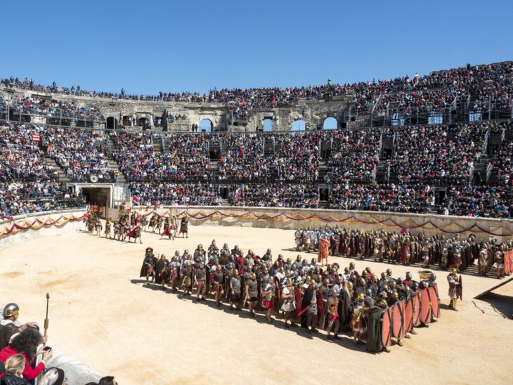 Cada año, más de 500 recreadores vienen de toda Francia, pero también de Alemania e Italia, para revivir los juegos legendarios del circo y cómo vivía la gente de Nemausus hace 2000 años, con luchas de gladiadores, desfile de carros, ofrendas, desfile de legionarios… Los Grandes Juegos Romanos se han convertido en el gran evento de la primavera de Nîmes.