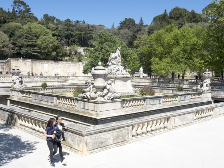 También deberemos visitar los Jardines de la Fountaine, unos de los primeros jardines públicos de Europa, construidos en el s. XVIII respetando el trazado del antiguo santuario romano que se alzaba sobre la fuente Nemausa. Descubrieron el yacimiento cuando hacían obras para levantar un fuerte y por suerte decidieron respetarlo. Dentro de los majestuosos jardines poblados de estatuas clásicas encontramos las ruinas del enigmático Templo de Diana, que en realidad fue una biblioteca.