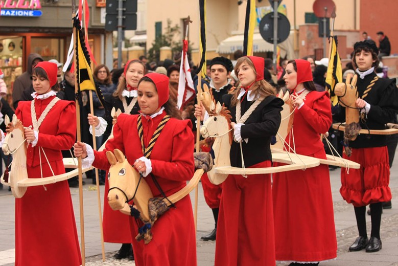 El centro de estos pueblos se convierte en una bella pista de arena para que los caballos, montados por habilidosos jinetes, se desafían en emocionantes carreras. En la Sartiglia de Oristano, los competidores pugnan por la “estrella sagrada”. Con cada estrella en manos del jinete el clamor popular se adueña del ambiente.