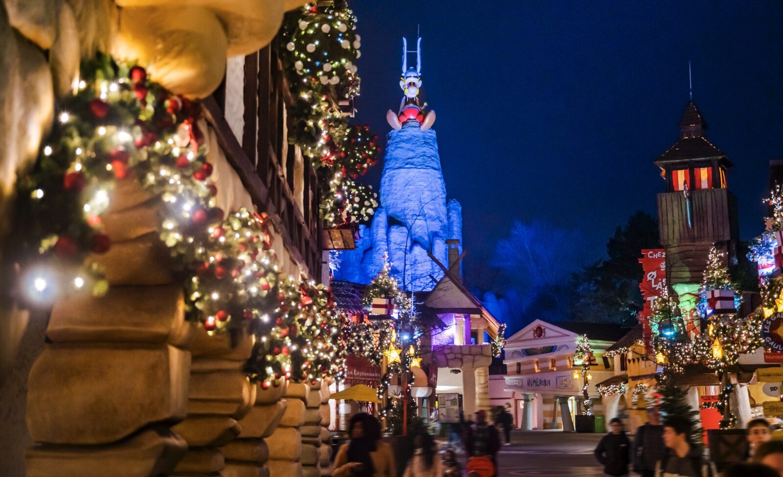 La diferencia respecto a otros parques está en el tono. Aquí la Navidad no es solemne: es alegre, divertida, cargada de humor. Ves a legionarios vestidos de elfos, a galos discutiendo sobre regalos y a personajes improvisando escenas que hacen que el paseo sea muy entretenido. Cada zona tiene su propia decoración y no verás dos espacios iguales.